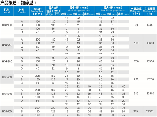 HGP系列單缸液壓圓錐破碎機主要性能特點